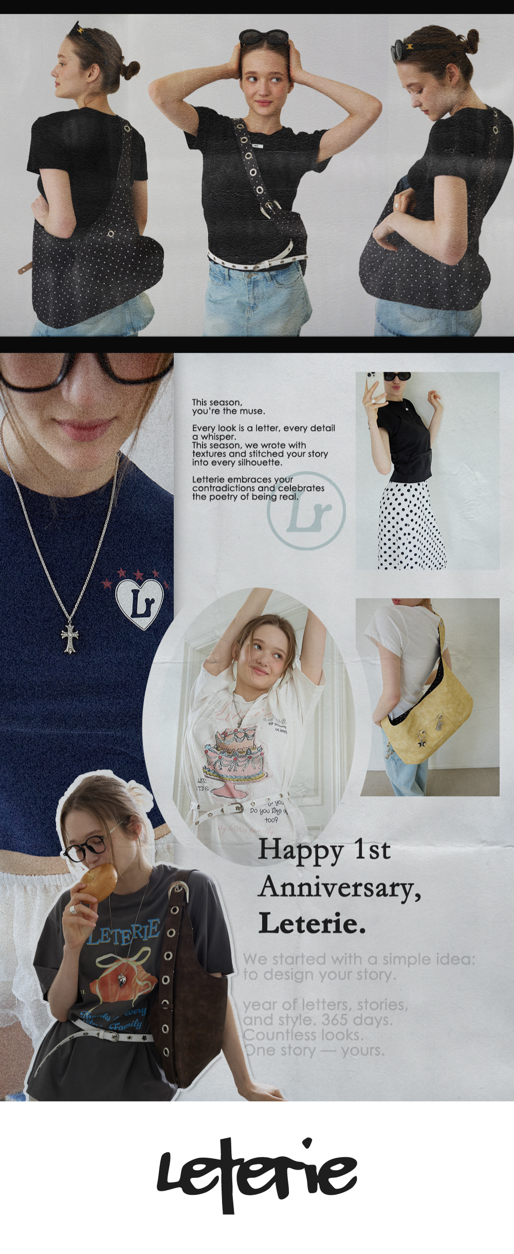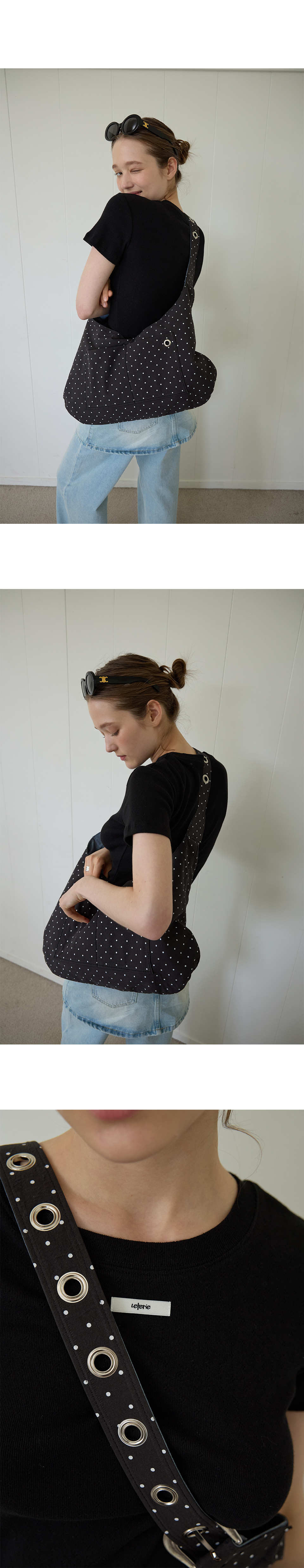 (leterie)雙面肩背包 棕色/黑底波點