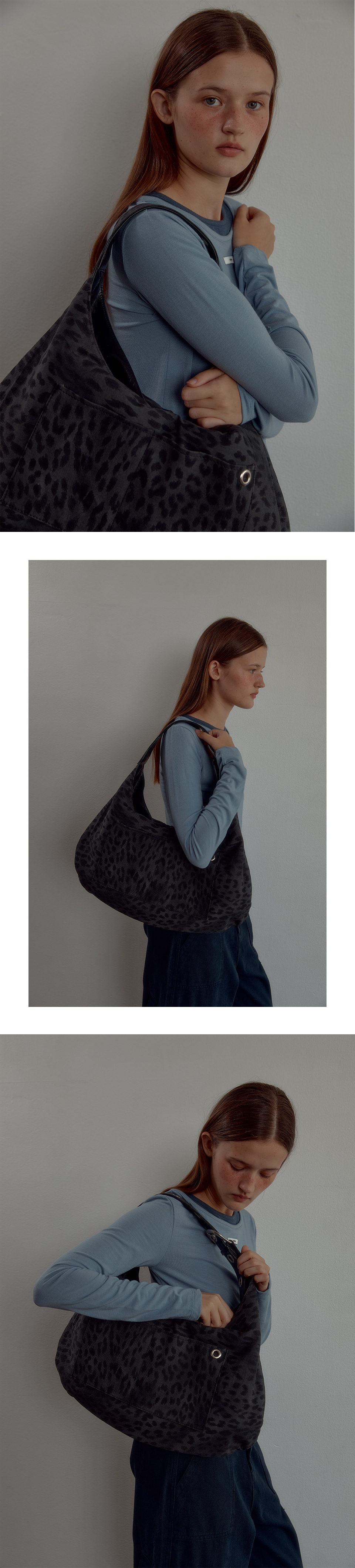 (leterie)雙面肩背包 鉚釘摩卡棕/豹紋