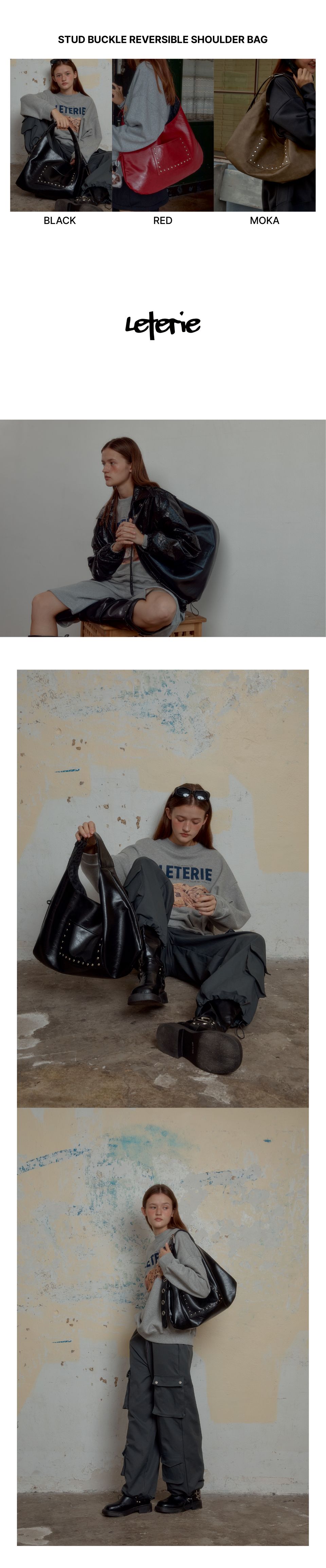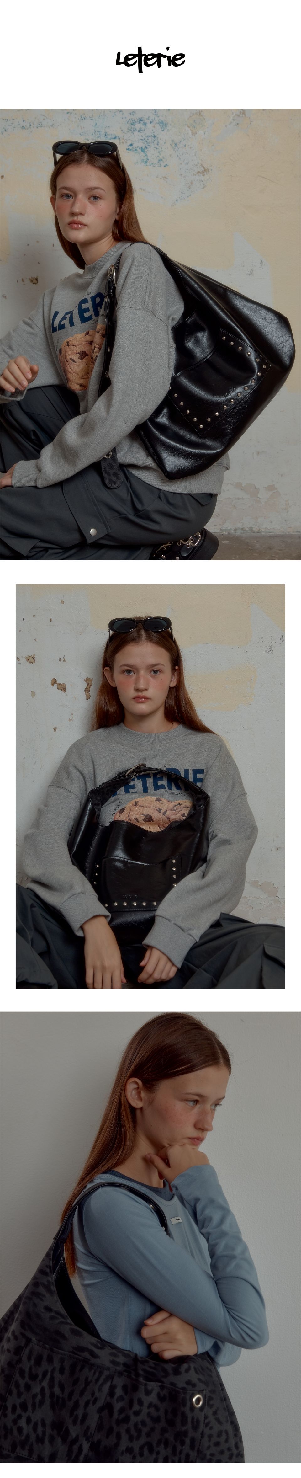 (leterie)雙面肩背包 鉚釘黑色/豹紋