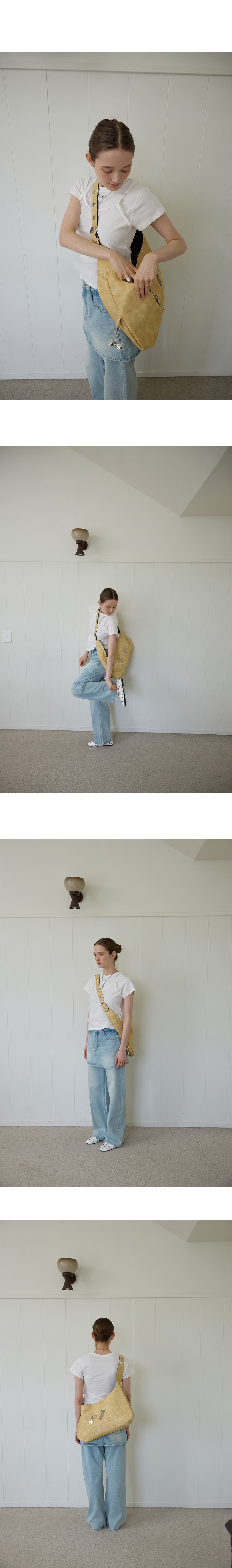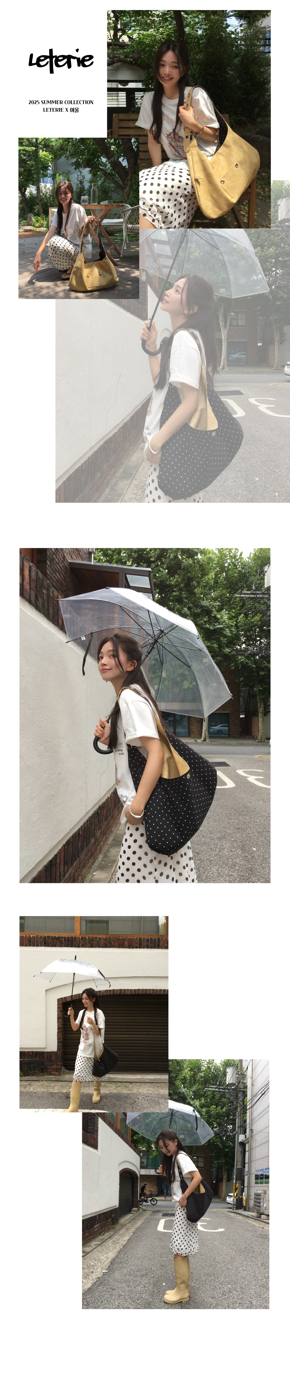 (leterie)雙面肩背包 奶油黃/黑底波點
